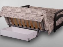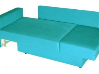 - Разгънете се странично Това са единични дивани. Моделът с кутия за спално бельо вътре е компактен и може да бъде разположен в малка стая.