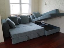 - “Делфин”. Под седалката се издърпва платформа, от нея се повдига блок с помощта на колан, който образува място за спане. Чекмеджето за пране в ъглови дивани е удобно разположено във фиксирано помещение.