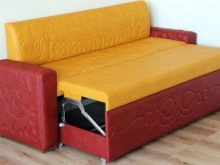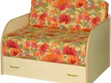 Единичният диван е проектиран в минималистичен стил. Въпреки ниската си цена (около 12 000 рубли), тя може да украси стая след нов ремонт. Сгъваемият механизъм е разтегателен, след изваждане се намира чекмедже. Размери – 85х170 см, при удължаване дължината се увеличава до 2 метра.
