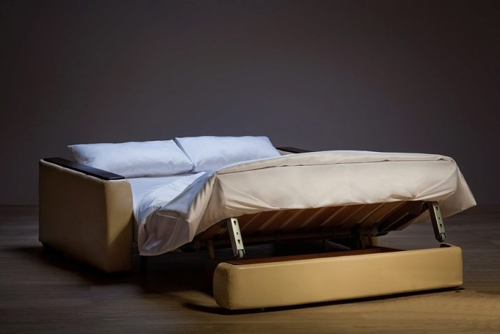 Кожените ватирани дивани с размери 2 на 3 метра с механизъм за акордеон и върху рамка от естествено дърво могат да бъдат както място за приемане на гости през деня, така и легло през нощта. Материалът за пълнене е пенополиуретан от латекс. Такива проби са оборудвани с много интересни функции: