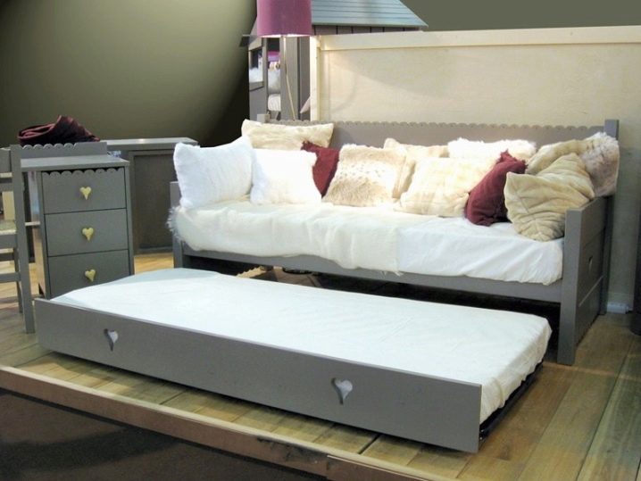 - “Акордеон”. Удължаването става по метода на акордеона. Облачно пространство за съхранение под леглото.