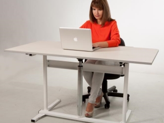 Благодарение на това решение за много работници от различни области стана по -лесно да изпълняват ежедневните си задължения, като имат възможност не само да седят на работа, но и да стоят, когато това стане физическа необходимост. Правейки това, хората облекчаване на стреса от гръбначния стълб, премахване на нарушен кръвен поток.