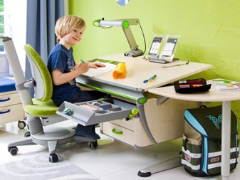 - Допълнително оборудване. Някои модели имат и полезни функции – вградено осветление, държачи за книги, куки за различни видове чанти и кутии. Те правят процеса на домашно обучение двойно по -лесен за детето, като държат всички необходими неща наблизо..