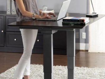 Благодарение на това решение за много работници от различни области стана по -лесно да изпълняват ежедневните си задължения, като имат възможност не само да седят на работа, но и да стоят, когато това стане физическа необходимост. Правейки това, хората облекчаване на стреса от гръбначния стълб, премахване на нарушен кръвен поток.
