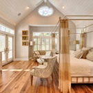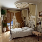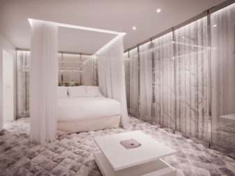 Подходящ е не само за спалня в класически стил и може да има модерни характеристики и детайли, за да се впише идеално в атмосферата на модерна стая.. Леглата с балдахин се завръщат на мода днес в съвременния интериорен дизайн. Те крият тази модерност в детайли. Малките детайли също оживяват романтичната спалня с балдахин. И така, фенери или гирлянд от белоснежни крушки разпръскват мека светлина около него. Леглото с балдахин превръща спалнята в романтичен и интимен остров като нищо друго – никакви цветни тапети, дантелени завеси или розови стени не правят същото. Достатъчно е да се построи легло с балдахин и да се усети мистериозната атмосфера от 1001 нощувки.