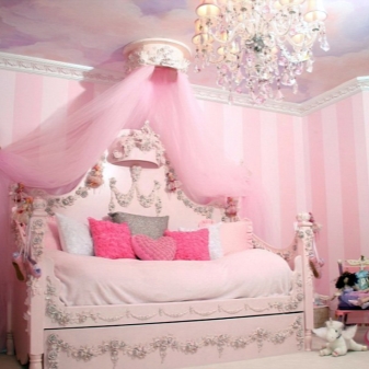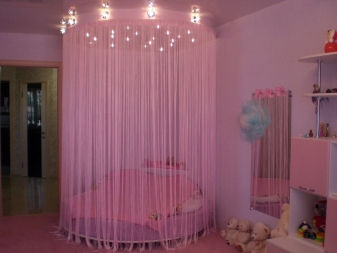 Сенникът е много приятен детайл не само в детската стая, но и в тийнейджърското пространство или в спалнята. Благодарение на интересната си форма, той е много по -интересен и красив, отколкото просто да закача завеси от тавана. Можете да оборудвате кът за игра, да поставите мек матрак, много възглавници и да направите тайна стая за момичета, където дневниците са скрити, а книгите се четат под светлината на настолна лампа. Но не трябва да забравяме, че тези прекрасни детайли са свързани с таваните, затова е по -добре да се уверите още веднъж, че дизайнът ще бъде надежден..