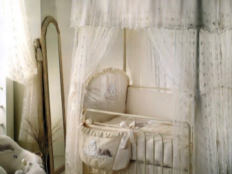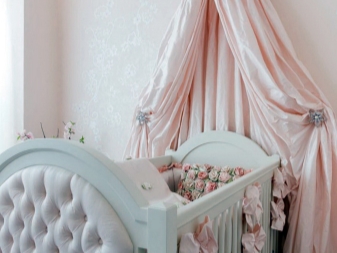 Ако изборът на цвета на креватчето му е безразличен за новородено бебе, то за по -голямо дете това вече ще играе важна роля. Момичетата харесват балдахините много повече от момчетата, защото по този начин те могат да се чувстват като истински кралици в своето кралство. За момичето бижутата се избират от розов плат или други деликатни и топли нюанси. За младо момиче цветовата палитра е по -разнообразна..
