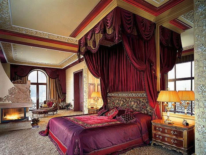 Дизайнът зависи от цялостния стил на стаята, въображението и предпочитанията. Някои хора предпочитат масивни драперии, докато други предпочитат почти безтегловна прозрачна материя. Камините могат да бъдат изработени от дърво, ковано желязо, неръждаема стомана или друг материал. Леглата само с рамки са доста популярни в съвременния интериор. Завесите могат да се закачат по желание, но много хора предпочитат минималистичен вид..