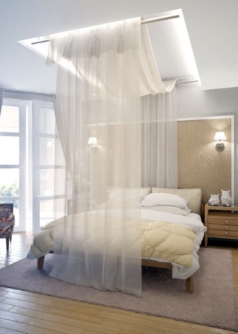 - цялото легло е завесено с кърпа, прикрепена към рамка, равна на периметъра на леглото (този дизайн се нарича “кралски балдахин”).