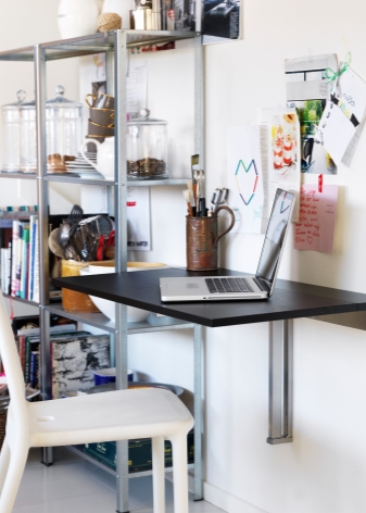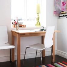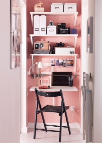 - Могат да се използват компактни и ергономични маси от марката за подреждане на работната зона, тъй като те не само перфектно побират цялото необходимо оборудване, но и са много удобни за използване. Много често на балкона се инсталира сгъваема маса, където можете да направите малък офис.