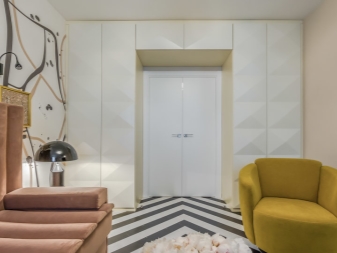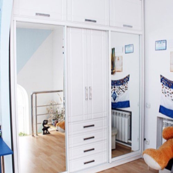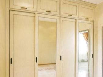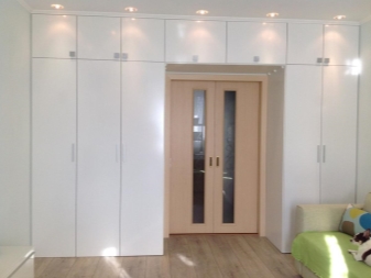 Как крилата на продукта се затварят и отварят, а именно върху механизма. Например люлеещите се конструкции са подходящи за големи и просторни помещения. Такива модели няма да ви помогнат да спестите място. Най -добрият вариант за малък апартамент е гардероб. Това ще се превърне в модерен и стилен акцент в стаята ви. Не забравяйте, че вратите могат да бъдат отделни на рафтовете и в килера, или могат да бъдат плътни. Трябва предварително да изберете кой вариант е най -подходящ за вашия апартамент..