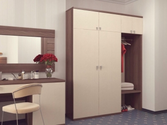 Тази опция има три врати. Такъв продукт обикновено се поставя в просторна стая. В същото време специалният дизайн позволява да се отваря само една врата наведнъж. Такива модели няма да са евтини, но ще помогнат за съхранение на голямо количество неща..