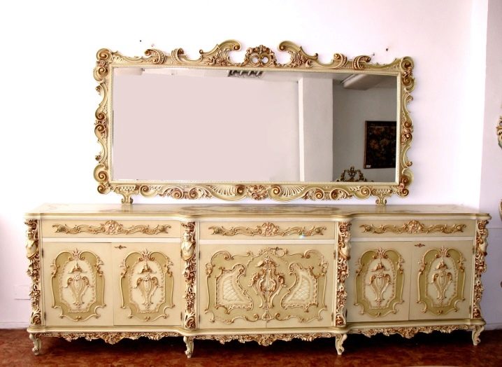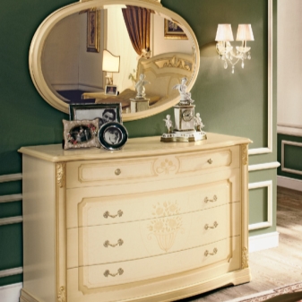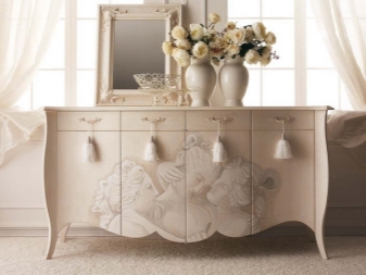 Стиловете барок и ампир се характеризират с лакирани версии с позлатени дръжки. Продукт с странни богато украсени фитинги е перфектен.