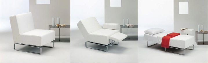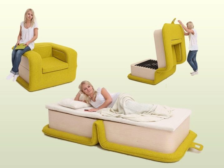 Тези столове са универсални. Те могат да служат като легло за малък апартамент или да бъдат резервно легло за гости. В зависимост от дизайна, домашните трансформатори се вписват хармонично във всяка стая.