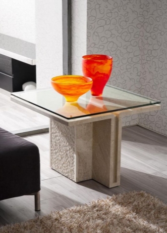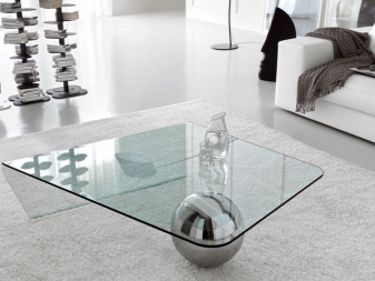 Стъклени модели с красиви крака, които се виждат през прозрачен плот, изглеждат оригинални и стилни. На такива повърхности обаче има отпечатъци и следи дори от вода, така че стъклената маса ще трябва да се избърсва през цялото време. В допълнение, стъклото е доста крехък материал, който изисква внимателно боравене..