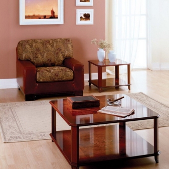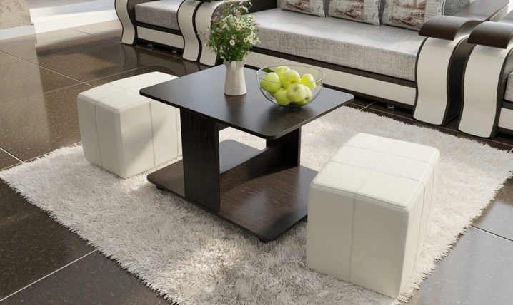 Ако по -късно мебелът ще бъде използван за рисуване от дете или като подложка за крака, тогава не трябва да избирате високи модели. Когато масата е разположена между фотьойли или диван и фотьойл, височината й не трябва да надвишава височината на подлакътника на мека мебел.