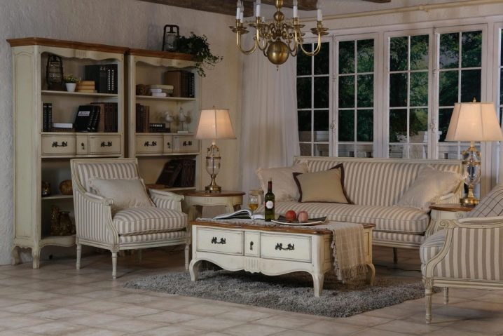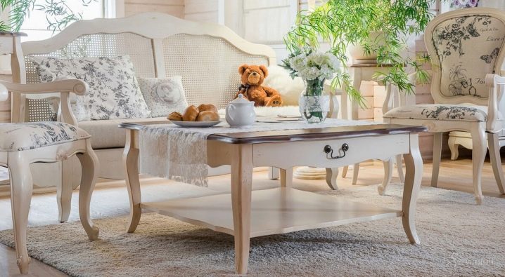 За френския стил Прованс са подходящи умишлено остарели модели, изработени от боядисано дърво, крака с издълбан модел и меки пастелни цветове.