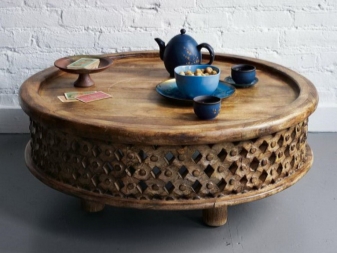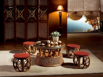 Ако при подреждането на хол изборът падна върху един от етническите стилове, тогава и мебелите трябва да бъдат съчетани. И така, масичка за кафе в етнически стил е направена от естествени материали. Тя може да бъде сурова дървесина, бамбук или плат. Ярък и закачлив декор под формата на мозайка от камъни или черупки е добре дошъл..