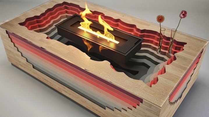 Атмосферата на комфорт и топлина ще помогне да се поддържа моделът за хола с имитация на горящ пламък. В допълнение, при липса на основно осветление, такава маса може да създаде романтична и леко загадъчна обстановка..