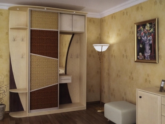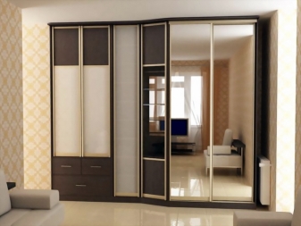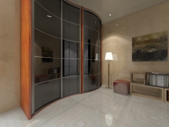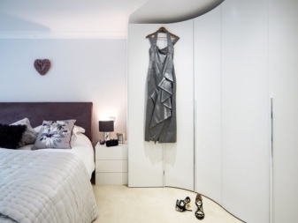 Тези шкафове имат заоблен страничен панел. Те имат гладки форми, така че могат успешно да се поберат във всяка стая. Ще бъде добре да инсталирате подобен гардероб в детската стая. В този случай ще бъде възможно да изберете най -ярките и интересни опции, например с изображението на любимите си герои.