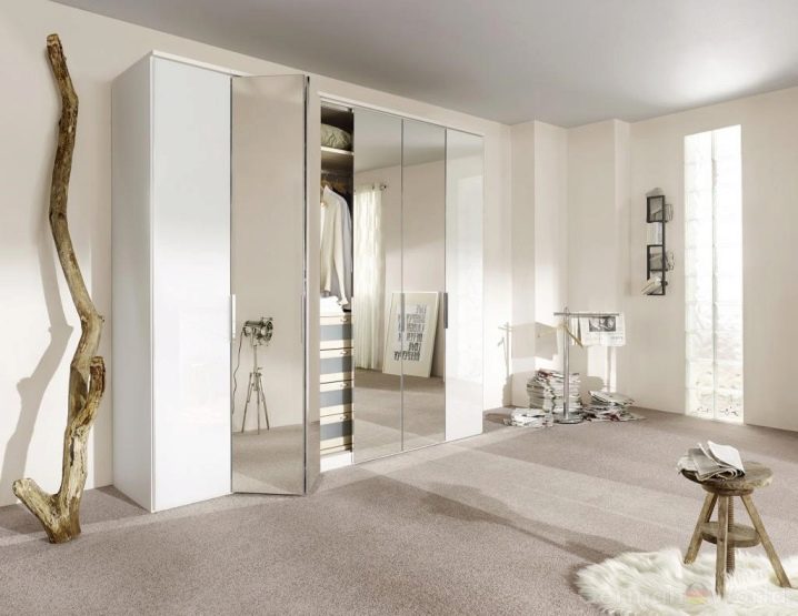 Тези опции са гардероб със сгъваема врата. Обикновено такива елементи са изработени от PVC, MDF, масивно дърво. Тези опции са много удобни и практични. Те няма да заемат много място в стаята ви. Но те също имат малък недостатък. Когато отворите шкафа, цялото му съдържание няма да се вижда напълно.