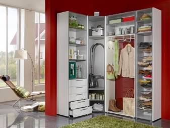 Такива оригинални опции обикновено се инсталират в коридора, в кухнята и се използват в гардероба. Удобството на продукта се дава от факта, че има достъп до необходимите неща. Няма нужда да отваряте вратите, което означава, че такъв шкаф може да бъде поставен във всяка стая..