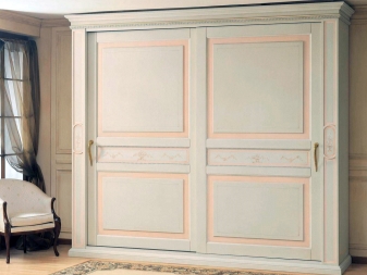 Тези опции са едни от най -популярните. Продуктът има традиционен дизайн. Вратите се отварят навън. Този модел е доста просторен. Можете да поставите всички необходими неща там, спално бельо, обувки, важни продукти, книги. Има обаче и недостатък. Необходимо е допълнително място за отваряне на шкафа. Следователно тази опция няма да бъде най -оптималната за малки помещения. В същото време можете да изберете много интересен дизайн и стилно въплъщение на опциите за люлка.