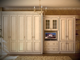 Класическият стил е доста популярен и търсен. Отличава се с яснотата и строгостта на формите, с изобилие от декорации. Шкафовете в подобен стил изглеждат изящни и скъпи. Обикновено в производството им се използва масивна дървесина. Следователно тези шкафове ще бъдат доста големи. Продуктът ще изглежда страхотно в класически стил в просторна стая.