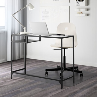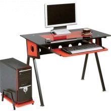 За производството на компютърни маси се използва стъкло в комбинация с други материали. Рамката на продуктите е изработена от леки сплави с хромирана или матова повърхност. При декорирането на платното се използват вложки от плексиглас, а комбинацията с дървени елементи ви позволява да изберете продукт в класически и ретро стилове. Стъклото може да бъде прозрачно, матирано, тонирано или да има шарка. При нанасяне на изображения обикновено се използват диамантено гравиране, фотопечат, а технологията за пясъкоструене се използва за придаване на обемен ефект..