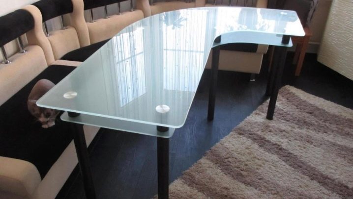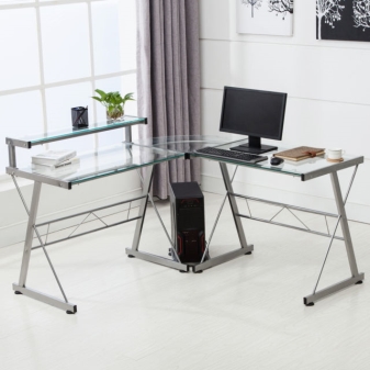 Стъклените компютърни маси се предлагат в голямо разнообразие от форми и дизайн. В допълнение към традиционните монтирани на стена продукти с права конфигурация, ъглови модели са много популярни. Тяхното предимство се крие във факта, че инсталирането на ъглова маса позволява по -ергономично използване на стайното пространство, използвайки “мъртвата зона”.