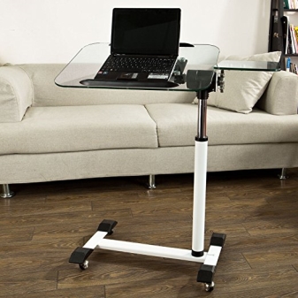 Избирайки маса за лаптоп, можете да се ограничите до тесен продукт, който може да трансформира и регулира позицията на работната повърхност. Забележителни са и компактните модели за дома с конзолен тип закрепване. Такива маси перфектно ще се впишат в стилове техно, хай-тек и минимализъм..