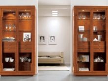 Някои модели шкафове със стъкло се доставят със система за осветление по време на производството. Тя може да бъде точкова или лентова. Този ход придава на мебелите оригиналност поради играта на светлина. Освен това ви позволява да се съсредоточите върху съдържанието на шкафа..