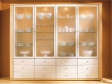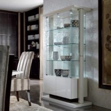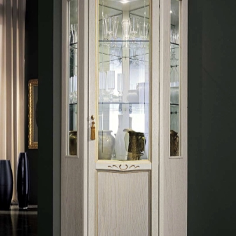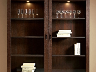 Някои модели шкафове със стъкло се доставят със система за осветление по време на производството. Тя може да бъде точкова или лентова. Този ход придава на мебелите оригиналност поради играта на светлина. Освен това ви позволява да се съсредоточите върху съдържанието на шкафа..