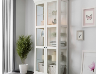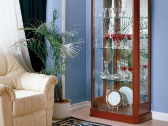 Стъклените врати ви позволяват незабавно да се уверите, че имате необходимия артикул. Освен това гостите (и самият собственик) могат да се възхищават на съдържанието на шкафа. Тези предмети са особено обичани от пътешественици и колекционери..