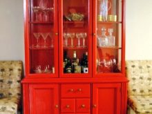 - Бюфет. Това е класически модел от съветската епоха. Структурата е разделена на три зони. Горната има стъклени рафтове, задната стена на мебелите е огледална повърхност, а фасадата е представена от стъкло с дебелина около 5 мм (или има полузатворен вид). Долната зона обикновено се затваря с дървени врати и се разделя на 2 рафта, изработени от дърво или пластмаса. Третата зона може да бъде разположена в зависимост от дизайна на мебелите, заключена е с ключ и също така е оборудвана с огледални повърхности отвътре. Именно в “бара” е обичайно да се съхраняват шоколад и силни напитки.