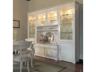 - Буфет. Такъв гардероб има по -големи размери от бюфет, а също така няма място за “бар”. Моделът обикновено е разделен на 2 зони: затворен с плътни гънки и остъклен. Някои шкафчета допълнително имат зона за съхранение на бельо или палта, може да има чекмеджета. Стъклената фасада е представена под формата на прозрачни врати или система с плъзгащи се врати.
