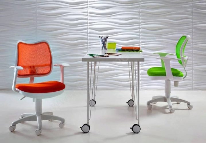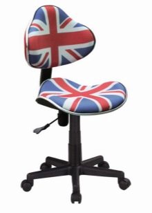 В зависимост от това дали столът ще бъде в офиса или у дома, повърхността му може да бъде плътна или цветна. За офис или кабинет се избират по -консервативни и неутрални цветове (черно, кафяво, бежово). За дома, особено в детската стая, можете да изберете по -ярки цветове, които отговарят на стила на интериора (жълто, оранжево, лилаво). Детските модели с изображения на любимите си герои ще се развеселят.