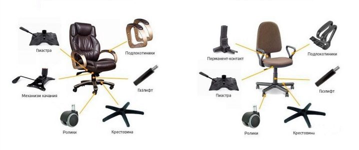Piastra – регулира височината чрез натискане на вентила за газлифт. Механизмите с пружинни винтове променят височината и наклона на облегалката. Top -gun – отговаря за накланянето на облегалката на стола и разклащането му. Многоблоковите механизми са скъпи, но компактни, позволяват ви да регулирате всички равнини. Резето ви позволява да фиксирате най -удобното положение: