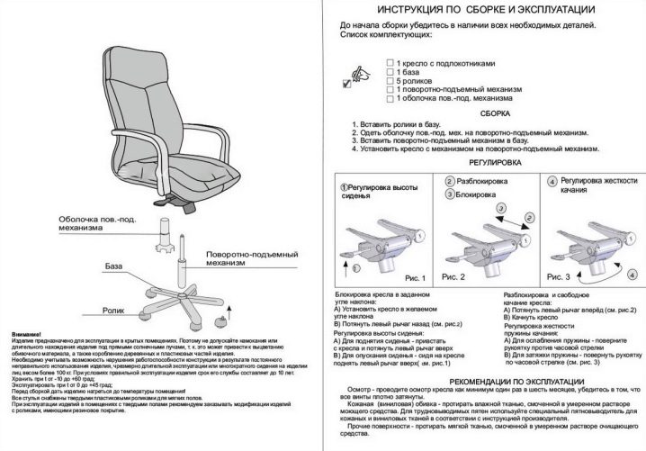 Етапът на сглобяване на стола е важен, както и етапът на подбор. Ако столът е оборудван със сложни механизми, по -добре е да прибягвате до услугите на професионални монтажници. Ако е оборудван с доста просто устройство с газов асансьор, тогава можете да спестите пари и да опитате. По правило инструкциите са прикрепени към всеки продукт, но ако го няма, можете да използвате следния алгоритъм от действия.