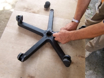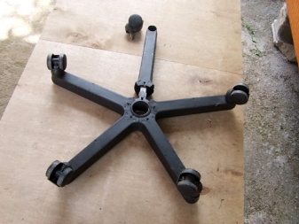 - Основата, която от своя страна се състои от крак, кръст и колела. Дизайнът с пет лъча е най-стабилният и ще предпазва от преобръщане. Колелата са за предпочитане да се въртят, това ще осигури висока маневреност на движението.