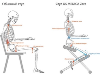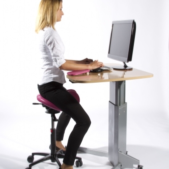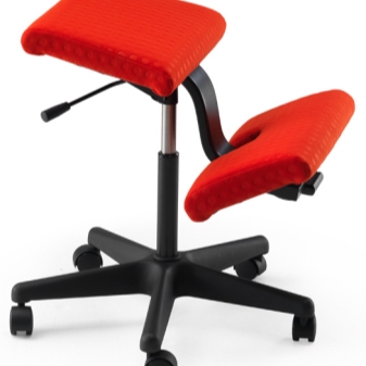 Не е най -добрият вариант на стола, характеризиращ се с подвижна основа и без облегалка. Дизайнът има панти, благодарение на които работата на мускулите на раменния пояс, гърба и шията се привежда в правилното положение с равномерно разпределение на натоварването върху тялото.