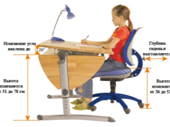 Височината на стола трябва да бъде същата като височината на бюрото. В това положение детето ще може да седи правилно на масата, без да се прегърбва, без да лежи върху нея. Самият стол ще принуди ученика да заеме правилната стойка, която много бързо ще стане удобна и позната..