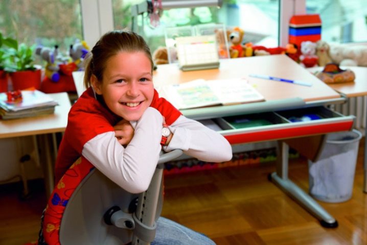 Специален стол за ученици Това е мощен инструмент, който комбинира няколко функции. Освен че поддържа гърба и разтоварва гръбначния стълб, той предотвратява нарушения на кръвообращението, допринася за образуването на почерк, нито един стол или изпражнения не могат да го заменят. Той е предназначен за бюро и се избира строго индивидуално. Задачата на такива мебели е да внуши умението за правилно засаждане на работното място, като същевременно създава атмосфера на домашен уют и атмосфера, благоприятстваща уроците..