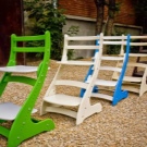 - Котокота. Моделът е изработен от дърво и може да се регулира в различни позиции. Повечето от тези столове вече са оборудвани с ограничители и затова могат да се използват от детството. Облегалките са монтирани на бегачи, което прави възможно бързото им пренареждане. Столът може да бъде боядисан в различни цветове.