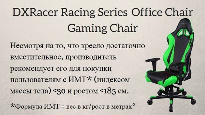 - Непрекъснатият интерес както на професионалните играчи, така и на любителите на геймърите е така нареченият актуален връх на състезателните столове за игри. Този списък включва модел от DXRacer “Офис стол за състезателни игри Стол за игри”. Креслото е изработено от стомана, тапицирано с кожа. По своята форма и дизайн е близо до столче за кола. Облегалката има удобно регулиране и гарантирано осигурява равномерно положение на гръбначния стълб, предпазвайки го от нежелани натоварвания поради колани и специални възглавници