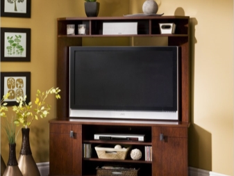 - Има модели без пиедестал. Те означават шарнирна конструкция – с място за телевизор и с други рафтове. Ако няма заден панел, телевизорът може да бъде поставен до стената.