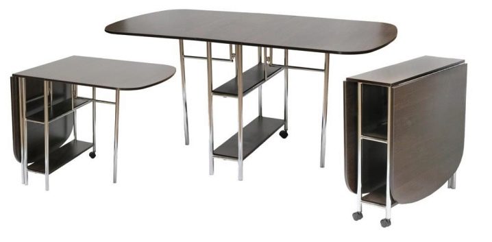 - Маса с допълнителни рафтове. Сгъваемият модел позволява не само съхранение на различни дреболии, но и поставяне на красиви декоративни елементи по рафтовете. Такъв продукт ще се превърне в декорация на стаята, в която има.