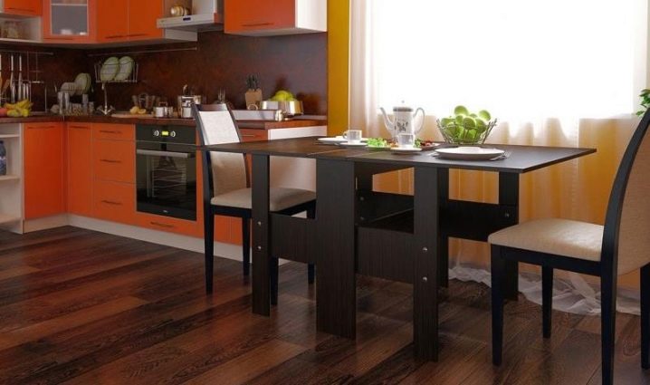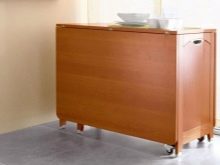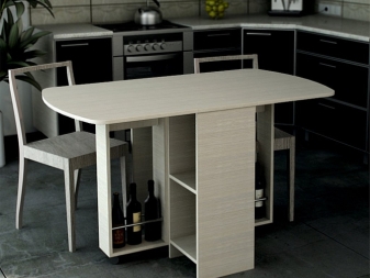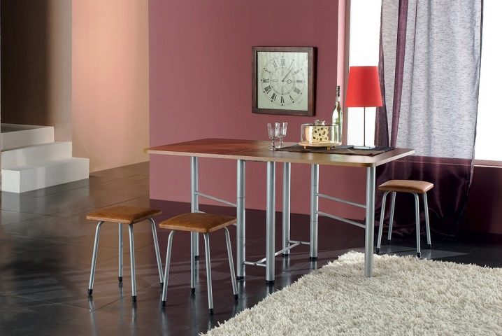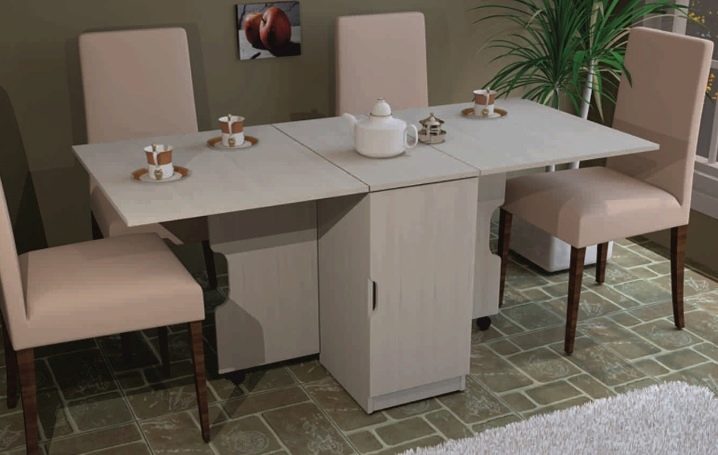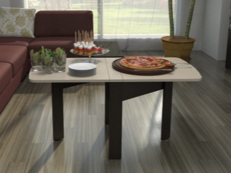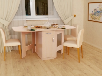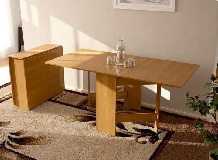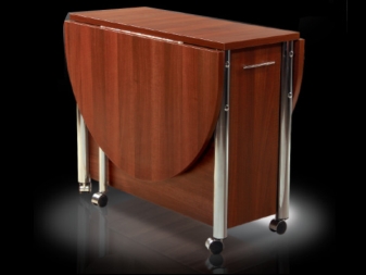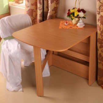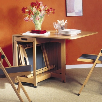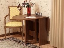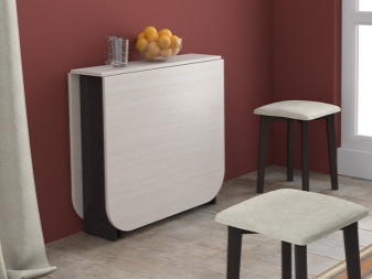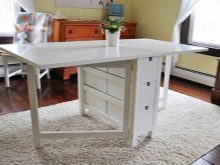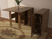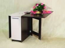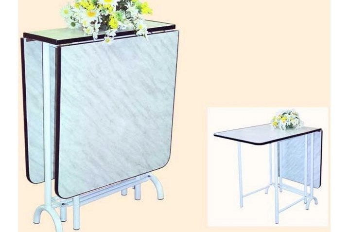 В сгънато положение тази компактна мебел заема много малко място. Но когато избирате конкретна опция, не забравяйте да оцените размера на такава маса, когато се разгъне..