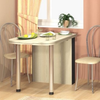 Домакините на малки кухни предпочитат да използват маса на пиедестал, тъй като тя заема минимум място, без да ограничава свободата на движение на домакинята. Момичетата отбелязват, че предпочитат да инсталират такъв продукт в ъгъл или до стена, а по време на обяда ги преместват и ги разпределят, създавайки голяма трапезария. Ето защо сред тях моделите на колела са много популярни, които позволяват дори на миниатюрна млада дама да премести масата на правилното място..