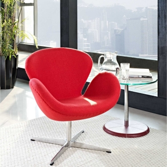Ако искате да добавите всички акценти, тогава можете да закупите червено меко кресло и да украсите стаята с него. В същото време е важно да приложите някои детайли от подобен нюанс на закрито..